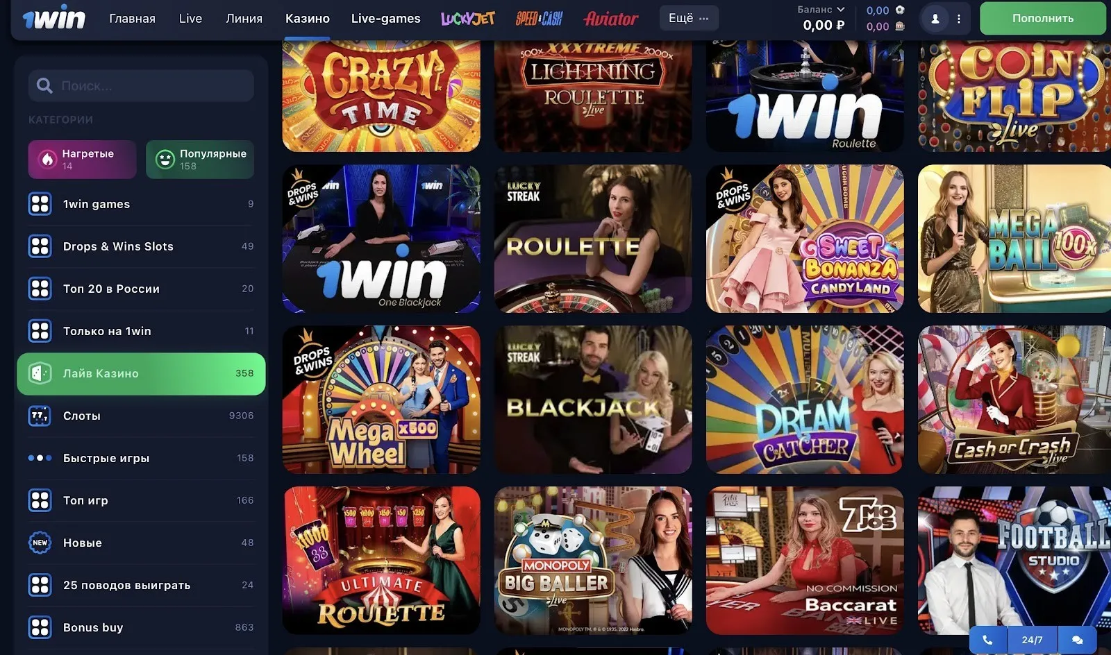 Особый акцент в последнее время делается не на настольные игры, а на так называемые crash games. Речь идет об Авиатор, Лаки Джет, Джет Икс. Ссылки на эти эмуляторы оператор публикует сразу в основной панели навигации на главной странице.